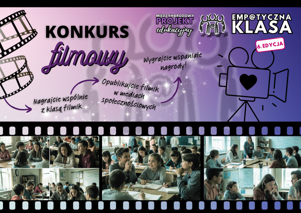 W ramach VI edycji projektu „Emp@tyczna Klasa” zapraszamy uczniów i nauczycieli do udziału w ogólnopolskim konkursie filmowym. Zadaniem zespołów klasowych jest przygotowanie krótkiego filmu pokazującego, jak w praktyce wygląda empatia w ich klasie – w relacjach, działaniach i codziennym życiu szkolnym.